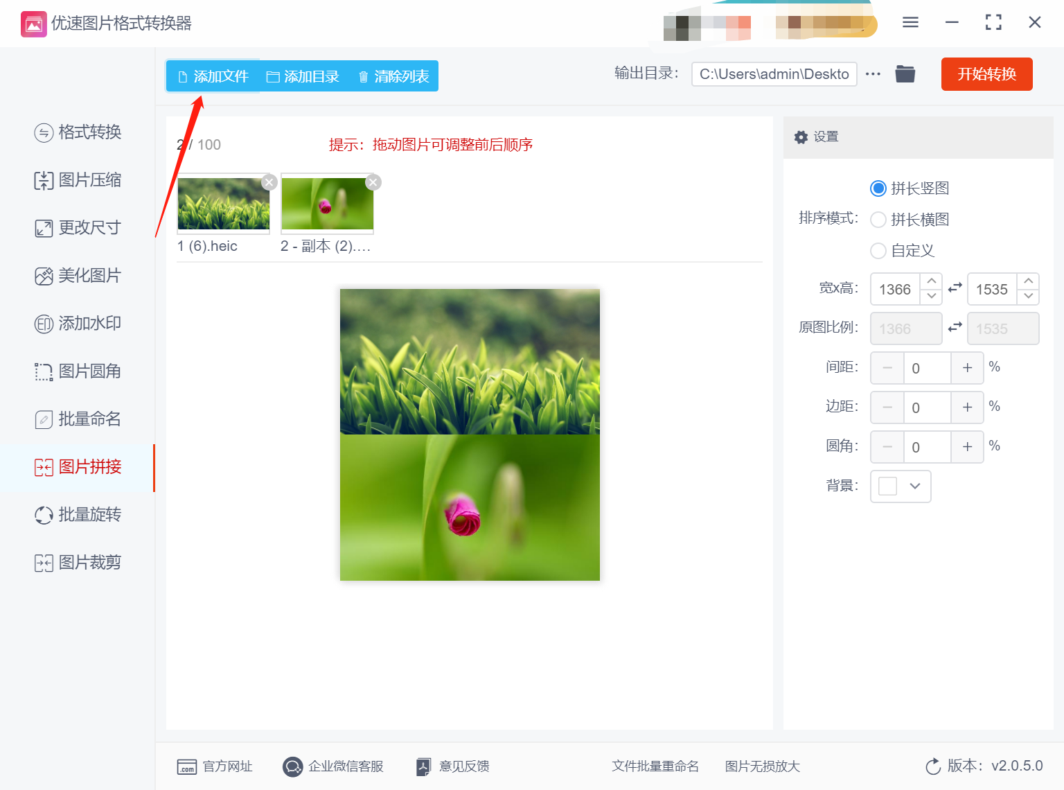 “优速图片格式转换器”开发者最初是以图片格式转换功能为主进行的开发。但根据客户的反馈和市场的需求,研发团队后续增加了很多功能,其中就包括了图片拼接功能。下面就来具体介绍此功能的实际操作步骤: