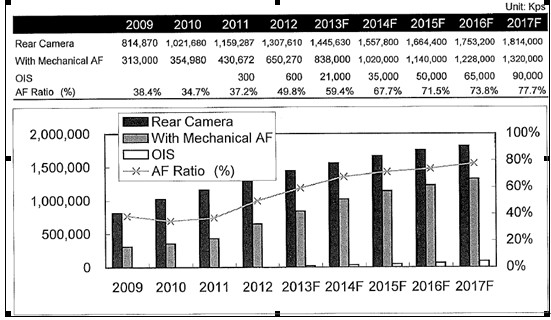 | 作为与VCM(音圈马达)匹配的driver IC一直被产业链当做一个小器件,故而默默无闻,较少为人所认知和谈论。其实小小的driver IC,是摄像模组实现自动对焦功能不可或缺的一部分。与VCM 马达是马车与车夫的关系。目前Closeloop(闭环式)异军突起、OIS呼之欲出。担当马车夫的driver IC日益显得重要,成为业界开始关注的焦点。 driver IC从工作原理来看,分开环式和闭环式两种。用来驱动传统VCM的,是开环式Driver IC。用来驱动Close Loop和OIS的,是闭环式driver IC。 Close Loop马达的Driver IC,涉足的厂家还不多,主要有 WithusVision(威德视)、 ONSEMI(安森美)、 AKM(旭化成)。其中,WithusVision(威德视)是领导者。Samsung是全球第一个应用闭环式马达的手机厂商,Galaxy S3和Galaxy S4的摄像头都采用了闭环式马达。而与该闭环马达匹配的驱动IC主要由WithusVision(威德视)供应,其次是AKM(旭化成)。 OIS马达的driver IC,涉足的厂家也不多,目前主要有ONSEMI(安森美)、 Ti(德州仪器)、 ROHM、NEC。在Close Loop领域的领导者WithusVision(威德视)和开环式领域的佼佼者DONGWOON(动运),似乎步伐有点慢,产品还处在研发中。WithusVision(威德视)目前主要将精力集中在GalaxyS5项目投标上,计划2014年7月才能出样。 调研机构分析认为,带摄像头的手机搭载自动对焦功能占比已突破50%,未来数年会逐步上升,到2017年占比会接近70%,如下图所示。 纵观自动对焦技术的发展方向,Close loop和OIS成为流行趋势。那么这给driver IC厂家带来了前所未有的发展机遇。同时,也给driver IC厂家带来了新的挑战。摄像头厂家对DriverIC的选择趋向严格、谨慎。部分手机客户也开始关注起摄像头模组厂用什么样的VCM driverIC了。他们希望选择一颗好的Driver IC,以提升对焦的精准度。他们希望选择量产经验丰富、技术力量强的厂家,以提升其产品的稳定性。