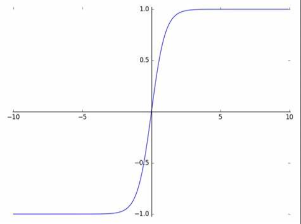 tanh函数通过将变量映射到0 1区间上,和sigmoid函数不同的是,其图像关于(0,0)对称,当x趋向于无穷大的时候,其输出趋向于0。虽然其图像同样存在饱和的问题,但是tanh函数是关于原点对称的,适合参数的调整。tanh函数的图像如下所示: