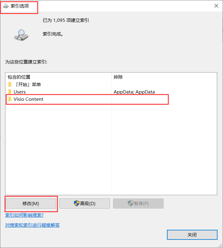 1.在索引选项中添加Visio Content目录(在Visio安装目录下)