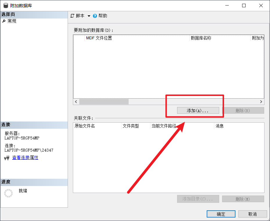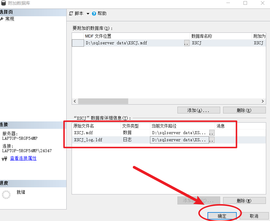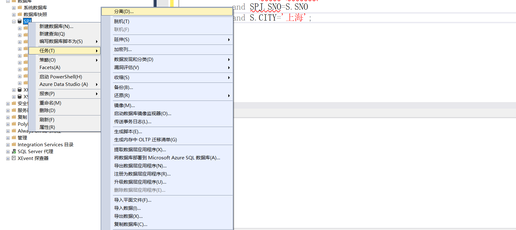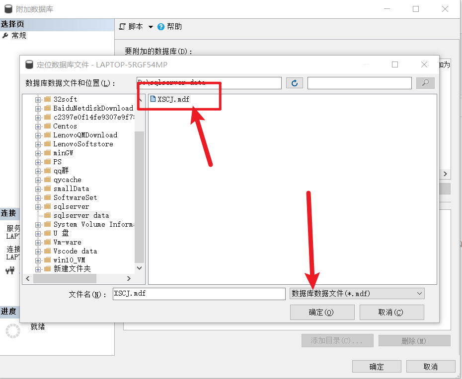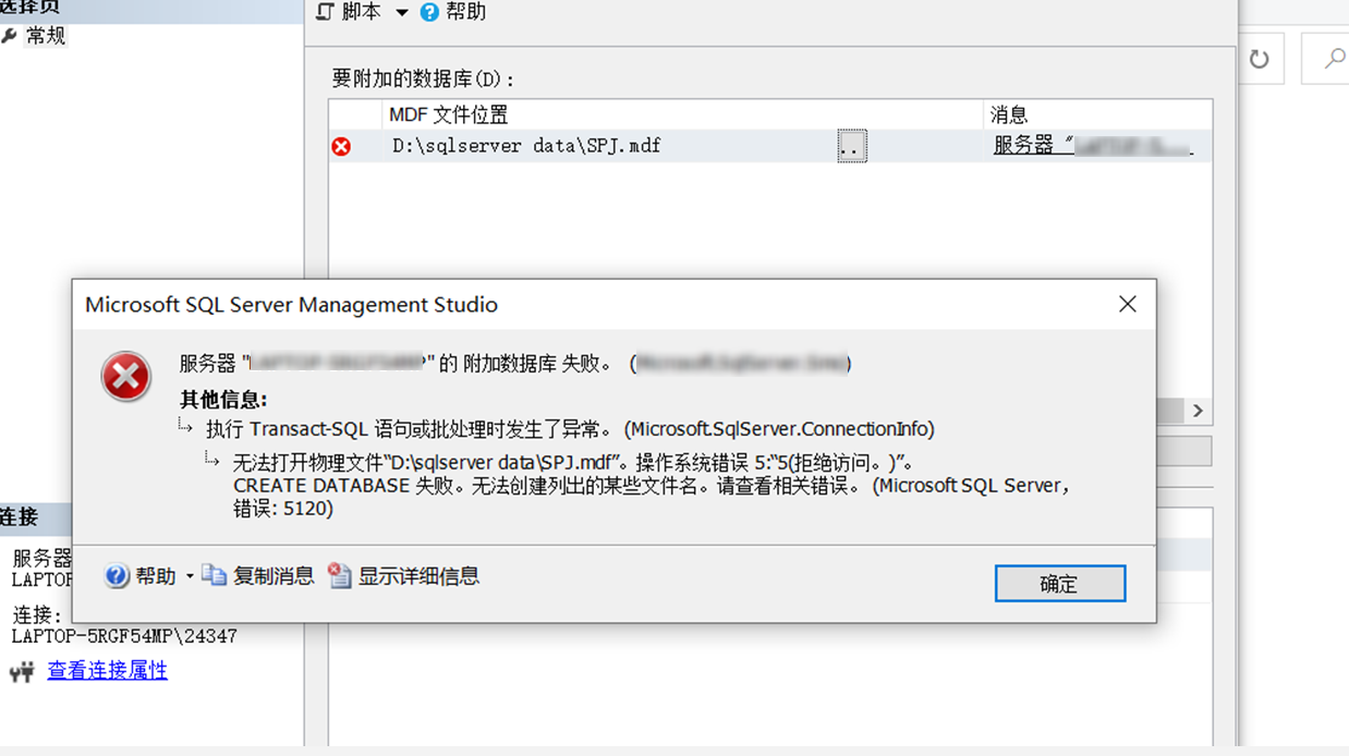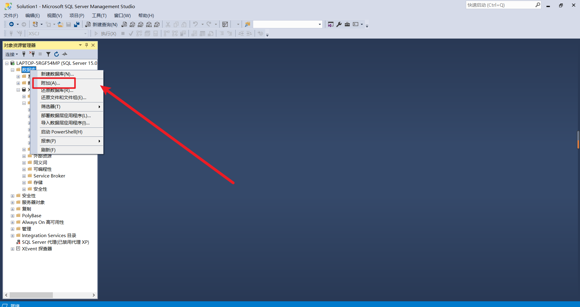 分离拿到mdf文件:(分离前应看属性里的文件位置)