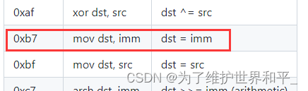 如第0行的0xb7表示为64位寄存器复制