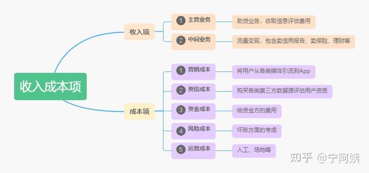 助贷公司很多Boss有银行系背景,所以业务划分借鉴了银行系风格,主营业务也就是助贷业务,是通过用户借款、还款这个过程产生的收益。