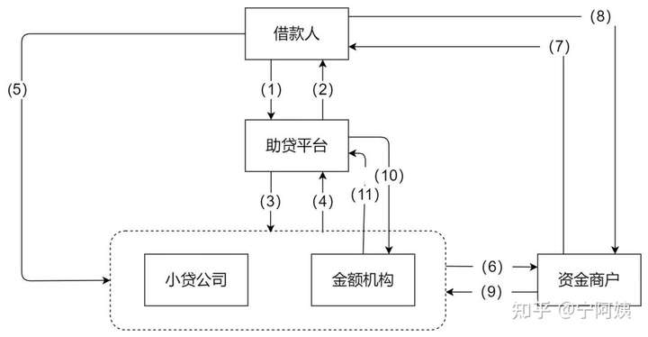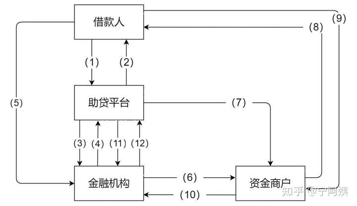 (1)借款人通过助贷机构获取信贷产品信息,提交借款申请;