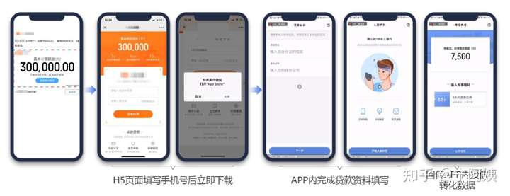 前端各媒体基本大同小异,根据媒体特性有所差异,这里以转化链路较多的腾讯媒体为例。主要是网页、公众号两种,然后引流到APP内或线下门店进行授信放款。
