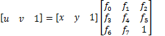因为图像都在二维平面,真实世界的车牌也平面化,为了将问题简化,U, V都除以W而变成u, v,X, Y都除以Z而变成x, y,A'也因为系数变化而变成一个新的矩阵,且其最末项为1。将逆透视变换的数学表达式重写为