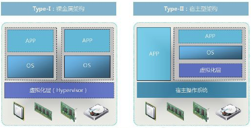 由于主机型 Hypervisor的效率问题 ,多数厂商采用了裸机型 Hypervisor 中的 Linux KVM 虚拟化,即为 Type-I(裸金属型)。