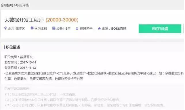 比如测试往开发、产品方向转等,最好参考下近几年的行业趋势,选择一个热门行业,因为转行到很成熟、很传统的方向,跟那些已经工作很长时间的人比,你没有什么优势,如果可以选择一个新兴产业,那么大家起跑线差不多,自己劣势没有那么大,像现在的大数据开发就是这样的行业,甚至最火的人工智能机器学习都是在此基础上进行升级的。下图可以看出,工资年薪至少可以40w。