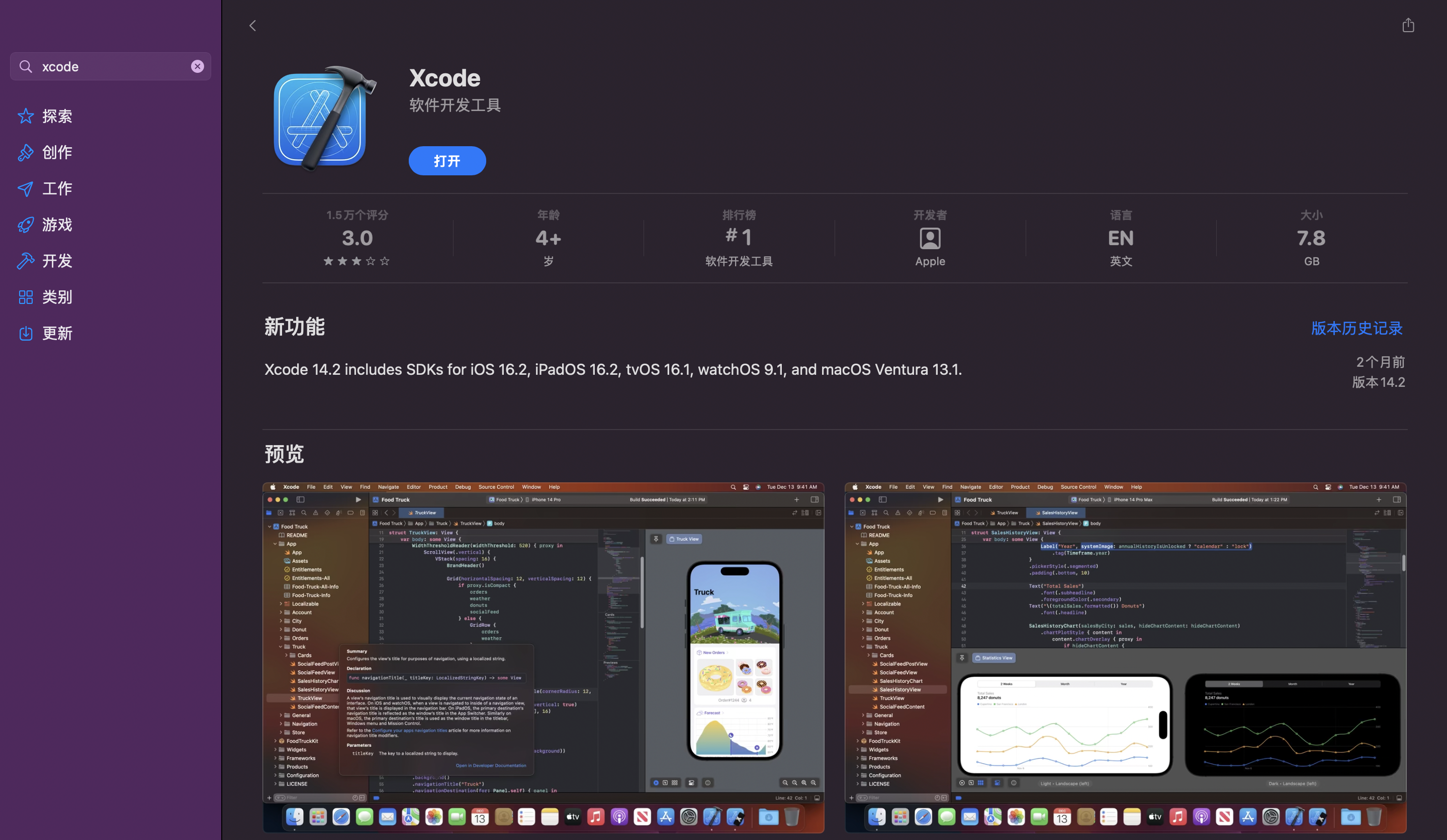 AppStore中搜并安装XCode & 在网页下载https://developer.apple.com/xcode