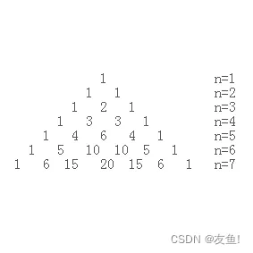 //完善内部for (int i = 2;i<nums;i++){for(int j = 1;j<i;j++){arr[i][j] = arr[i-1][j-1]+arr[i-1][j];}}