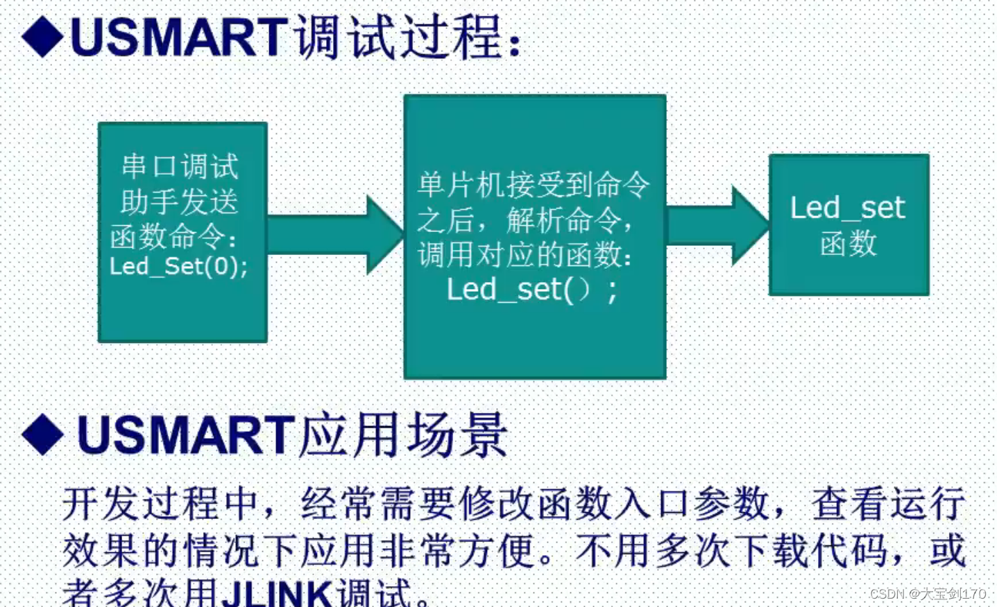 例如:如果调用void led_set(u8 sta)函数来进行测试,在usmart_config.c中取消对该函数的注释,并且在主函数之前定义该函数,相关函数编写可参考usmart_config.c中对此函数的操作