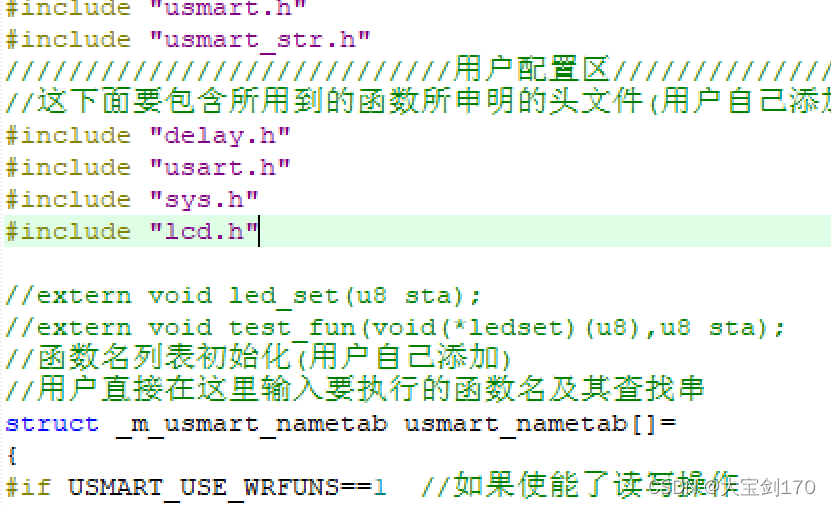 usmart_config.c主要由用户添加需要由usmart管理的函数。注册函数。