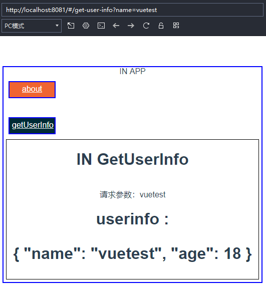 import GetUserInfo from '../components/GetUserInfo.vue'Vue.use(VueRouter)export default new VueRouter({routes: [{path: '/about', //路由路劲component: About //渲染的组件},{path: '/get-user-info',component: GetUserInfo}]