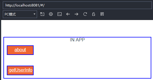 <template><div id="app">IN APP<br /><router-link to="/about" class='btn' active-class="active">about</router-link><br /><router-link to="/get-user-info?name=vuetest" class='btn' active-class="active">getUserInfo</router-link><router-view></router-view></div>