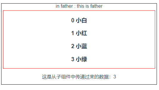 </template><script>import son from "./son.vue"export default {name: 'father',components: {son},props: {msg: String},data() {return {currentIndex: -1,sonList: ['小白', '小红', '小蓝', '小绿']}},methods: {onEmitIndex(idx) {this.currentIndex = idx}}}