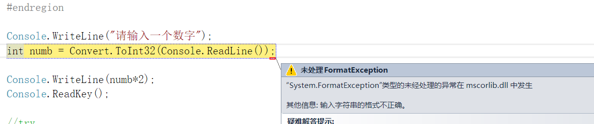 例如这个代码,当我们在控制器时输入的不是数字而是其他的文字或者其他符号呢?所以这里程序就会报错,因为int变量是不能储存其他的数据的。