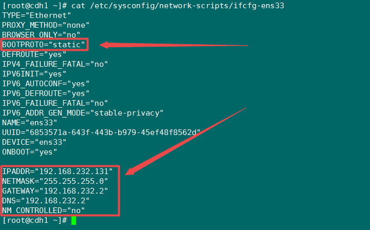 cat /etc/sysconfig/network-scripts/ifcfg-ens33