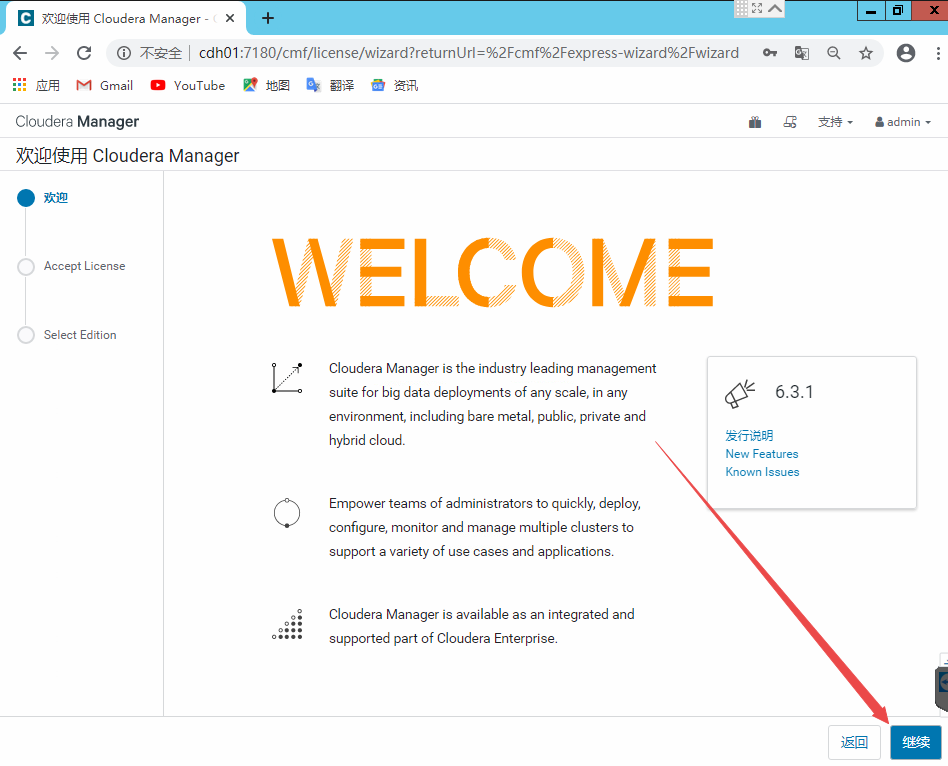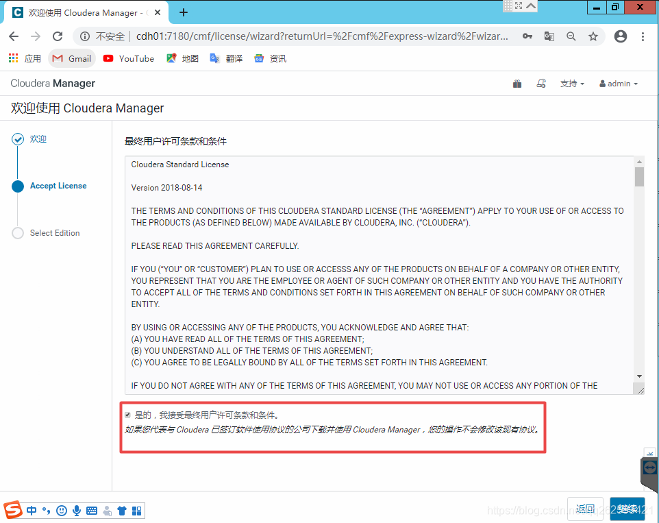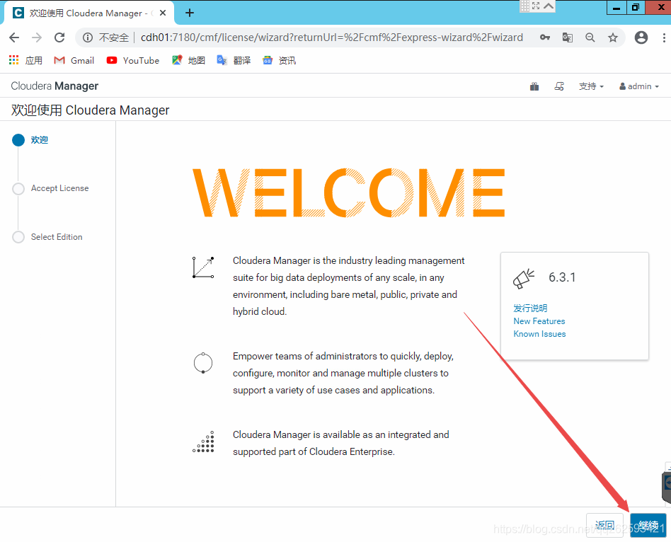 (1)浏览器访问 http://cdh01:7180,进入cdh登录界面,默认账户密码 admin admin
