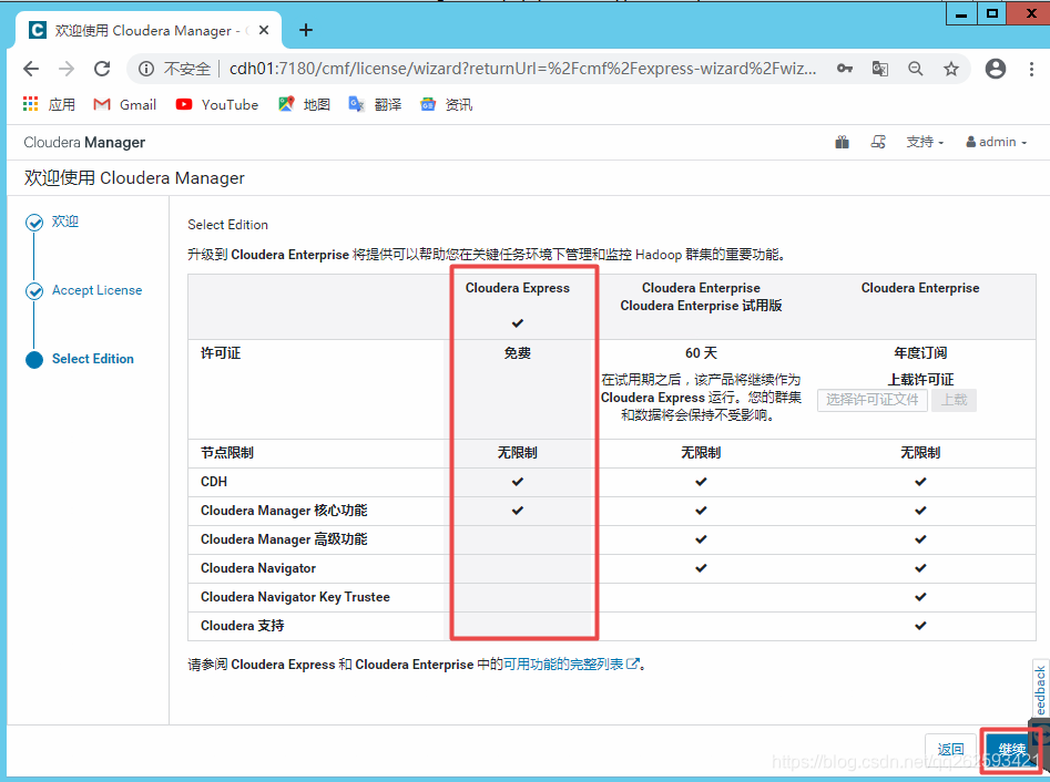 Install Parcels:http://cdh01:7180/cmf/express-wizard/resume#step=parcelInstallStep