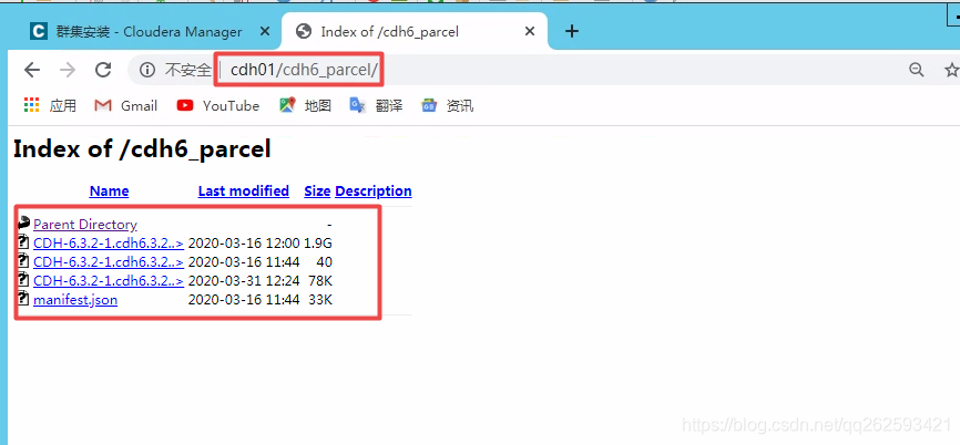 安装httpd,将 /opt/cloudera/parcels/parcel-repo 下的文件复制到 /var/www/html/cdh6_parcel/