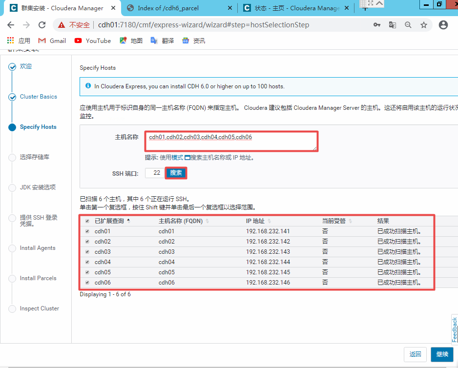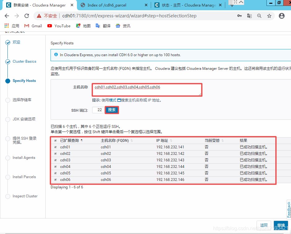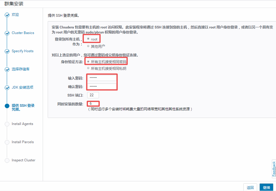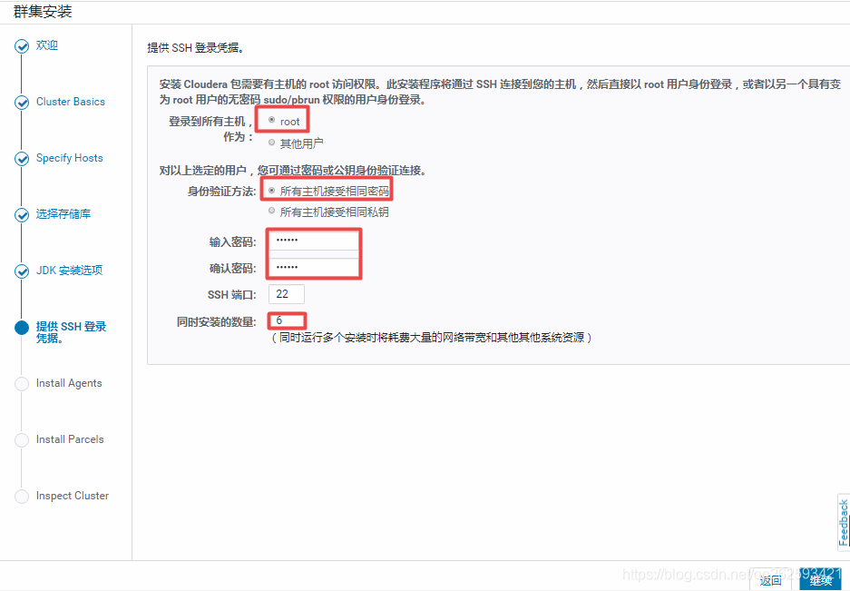 前面没有配置ssh免密码登录就是因为在CDH安装的过程中,这里会让我们设置ssh的账户密码