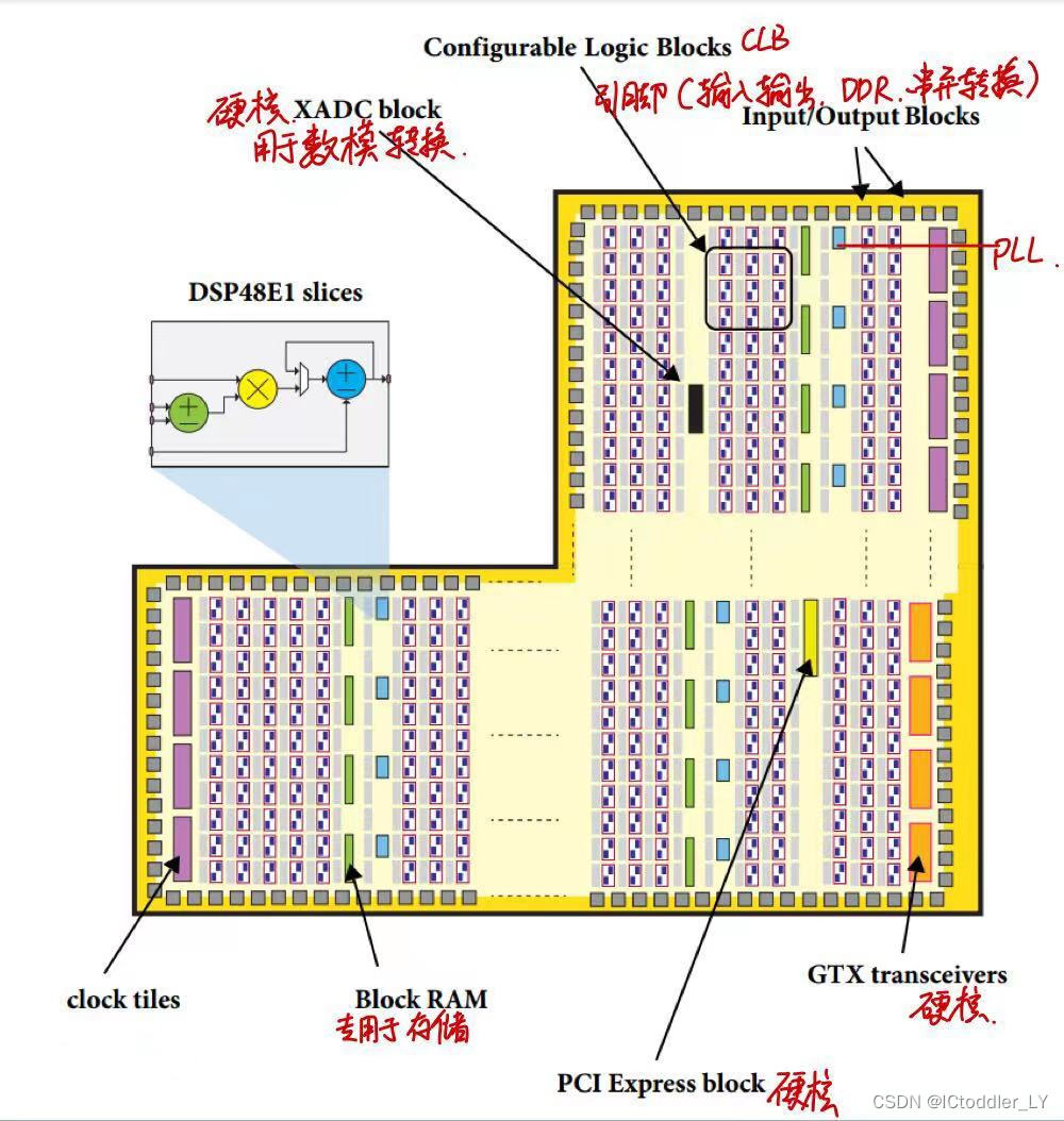 可编程逻辑单元:Xilinx是CLB,ALTERA是LAB。