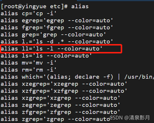 找台 linux 机器执行一下 alias 命令,可以看到一个很熟悉的命令 ll