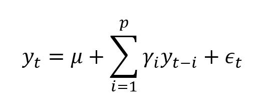 yt=c+ϕ1yt−1+ϕ2yt−2+……+ϕp/yt−p+εt