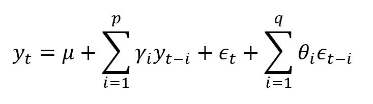在这个公式中,p与q分别为自回归模型与移动平均模型的阶数,是需要人为定义的。γi与θi分别是两个模型的相关系数,是需要求解的。如果原始数据不满足平稳性要求而进行了差分,则为差分自相关移动平均模型(ARIMA),将差分后所得的新数据带入ARMA公式中即可。