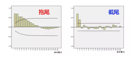 ####拖尾是指序列以指数率单调递减或震荡衰减,而截尾指序列从某个时间点变得非常小。