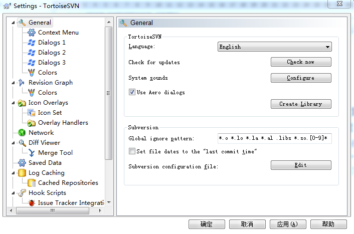 比如刚建立的版本库不会对.so、.a文件进行归档,需要用户设置才生效,比如要将文件名后缀为so的文件纳入版本管理,则做如下操作,进入文件夹->单击鼠标右键 -> TortoiseSVN -> General -> Subversion -> Global ignore pattern -> 删去”*.so.[0-9]*”->确定。
