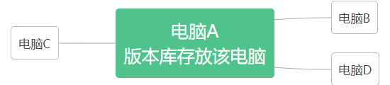 如下图,跟单机版一样,电脑B、C、D需要安装TortoiseSVN,电脑A除了安装TortoiseSVN还要安装VisualSVN-Server,可以从官网下载或百度网盘下载。