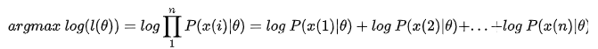 简化后的函数对参数估计很有用。 为了最大化观察到的事件的可能性,取log函数,最大化参数θ。