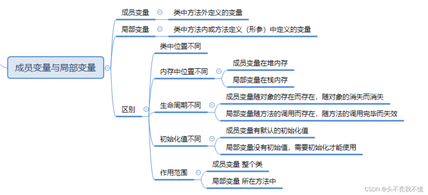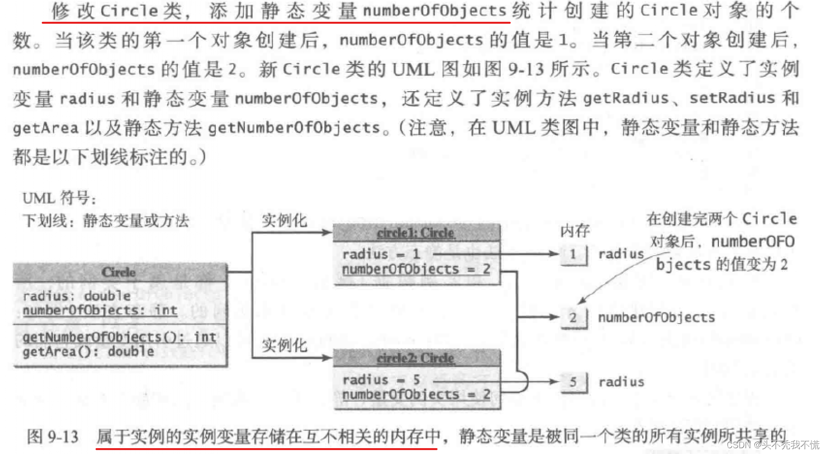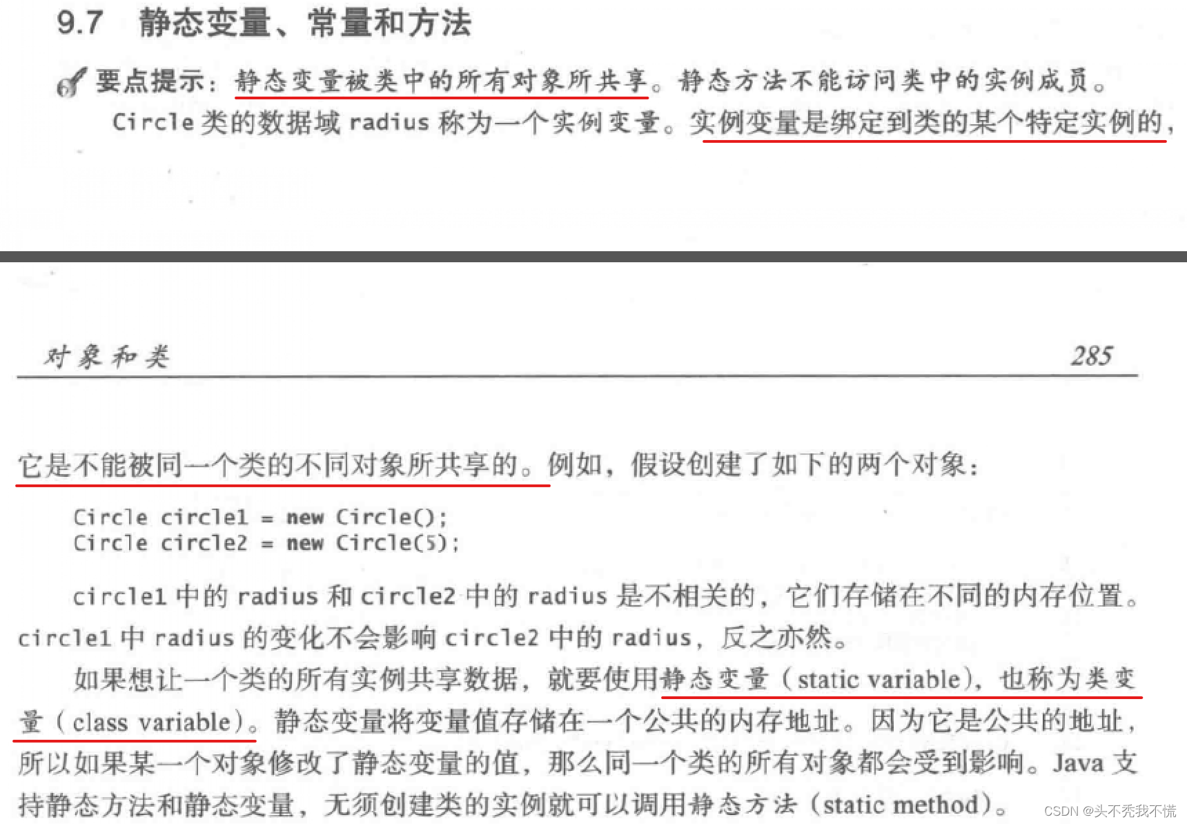 按理声明的静态变量和实例变量等都算成员变量内了。但"成员变量随着对象的建立而建立,随着对象的消失而消失,存在于对象所在的堆内存中,所以也叫对象的特有数据;静态变量随着类的加载而存在,随着类的消失而消失, 静态变量数据存储在方法区(共享数据区)的静态区,所以也叫对象的共享数据"所以成员变量应当只是指代实例变量