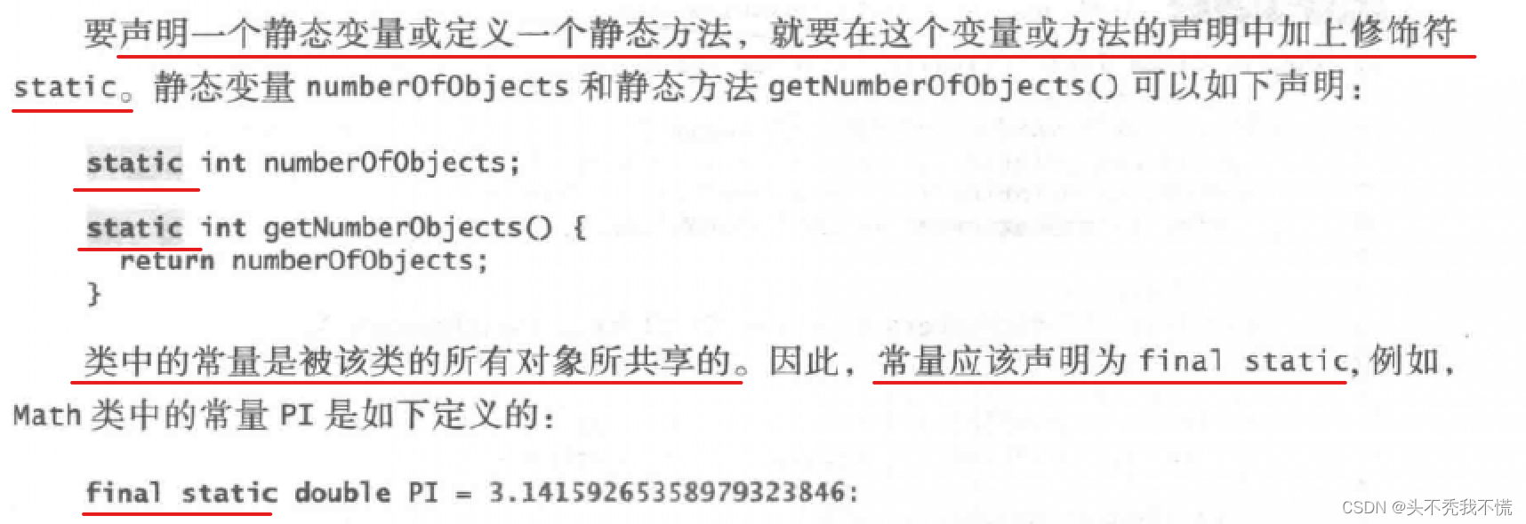 3、"常量应当被类的所有对象共享,所以要加final static修饰"