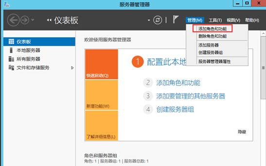 (1)打开服务器管理,点击添加角色和功能