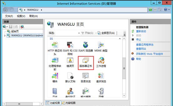 (1)打开 Internet Information Service(IIS),在右侧 IIS 功能下面找到‘服务器证书’,双击进入