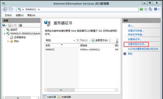 (2)在右侧面板中单击 创建自签名证书