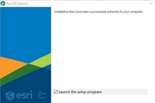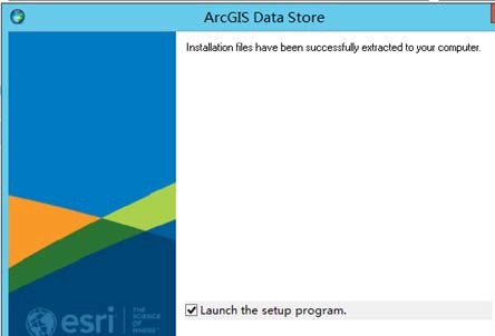 (1)双击准备的 ArcGIS_DataStore_Windows_1071_169689.exe 开始安装包的提取,之后在安装界面上默认勾选 Launch the setup program,点击 close 进入 Data Store 的安装