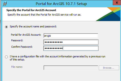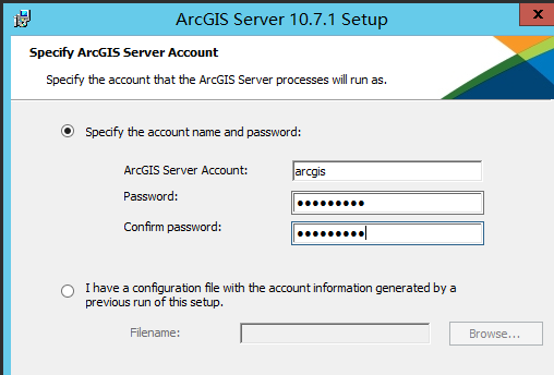 (3)输入 arcgis server 账户的密码(此账户是系统级别账户),此处输入默认