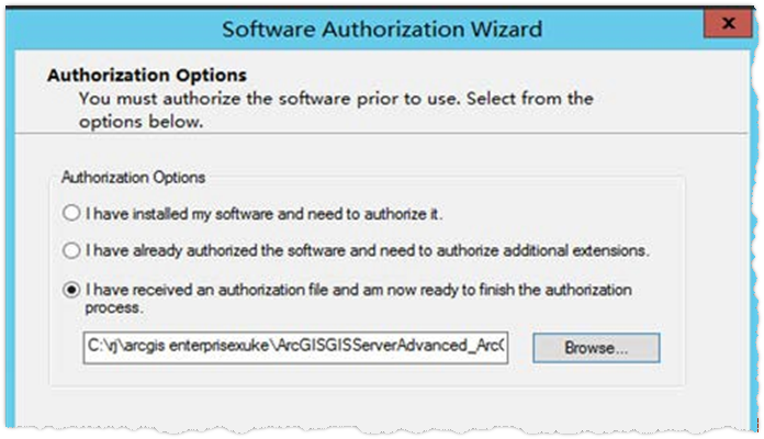 (5)点击 Finish,通过 Software Authorization Wizard 完成软件的在线或离线授权。也可点击 Software Authorization Wizard 界面上的取消稍后进行软件授权。这里是采用授权文件授权:选择第三个选项点击 Browser,选择授权文件,点击下一步