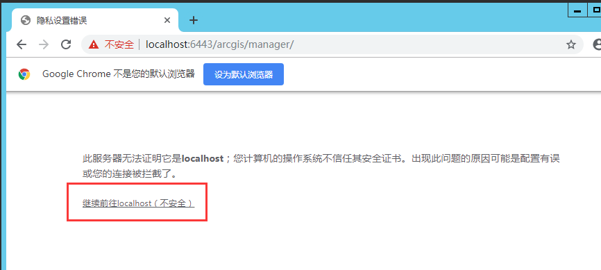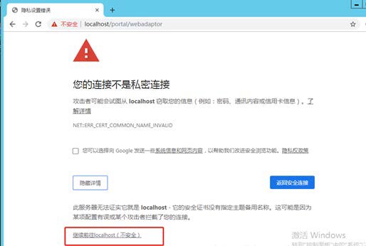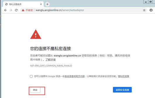 (1)继续访问网页,对于 Chrome 浏览器:点击‘高级’,再点击‘继续前往