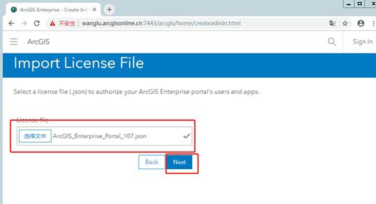 (1)点击‘Create New Portal’,使用授权文件进行授权 (10.7.x 授权文件变成了json 文件),点击‘选择文件’找到授权文件,点击 Next