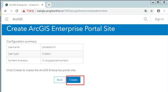 (5)点击 Create,开始创建 ArcGIS Enterprise Portal Site,等待其创建