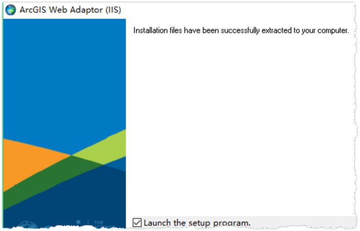 (1)双击 Web_Adaptor_for_Microsoft_IIS_1071_169690.exe 开始安装包的提取,提取完毕后安装界面上默认勾选 Launch the setup program,点击 close,进入安装窗口。