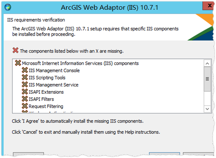 (2)在 IIS requirements verification 安装界面上,点击 I Agree 自动安装缺失的IIS 组件