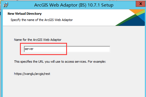 (3)给 Web Adaptor 起名字,自定义(为了使 server 和 portal 分开,建议分别不同的名称),此处起了 serve’, 用于 arcgis server 的配置.,点击 Next