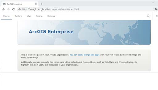 3)Web Adaptor 配置 Portal 完成,可以使用域名访问门户应用程序了,https://wanglu.arcgisonline.cn/portal/home 即是门户地址
