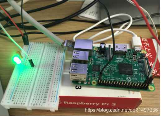 使用物理引脚3,默认功能为GPIO2,我们使用GPIO2驱动LED,此时涉及到硬件知识,树莓派的GPIO口的输出电压为3.3V,所以先设置GPIO为输出高低电平,间隔1s,因为是测试,不使用限流电阻。