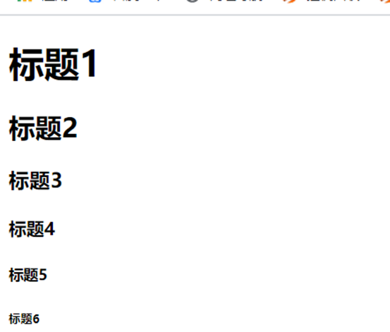 <h1>标题1</h1><h2>标题2</h2><h3>标题3</h3><h4>标题4</h4><h5>标题5</h5><h6>标题6</h6>
